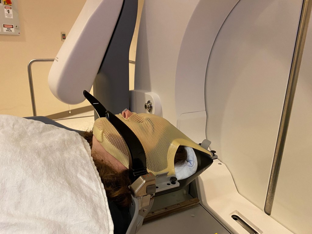 On March 5th, 2021 I underwent Gamma Knife surgery to target a brain tumor. Very few things can prepare for that moment and experience. The previous few days were filled with pre-operation appointments and scans. The morning of the surgery a mold was made of my face. I was told that because of the position of the tumor they did not need to put a halo on me. A halo is essentially a metal apparatus that’s literally screwed into your skull to make sure you don’t move during the surgery. Let’s pause there…screwed-into-your-skull. I’ll admit that part freaked me out and went into full research mode with google and talking with other patients who had been through the procedure. But at the end of the more than slight panic attack, lasers need to be very precise. Due to COVID restrictions at the time, Brandon had to stay at the hotel across from the hospital. I would walk down there alone, put on a brave face, and when ready walk back to our room. The truth was that I was terrified…not so much of the laser beam but of the possibility of it not working.
