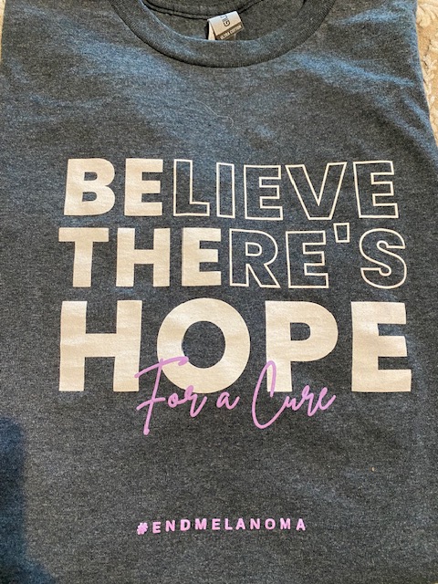 During my visit to MDA last week I wore the Melanoma Awareness shirt that was part battle armor and part moral support. After my last appointment of the day I waited by the elevator when an older man with a cancer support shirt on himself read my shirt and asked me if I believe in a cure. I said yes and I had survived. He smiled and said “me too”.